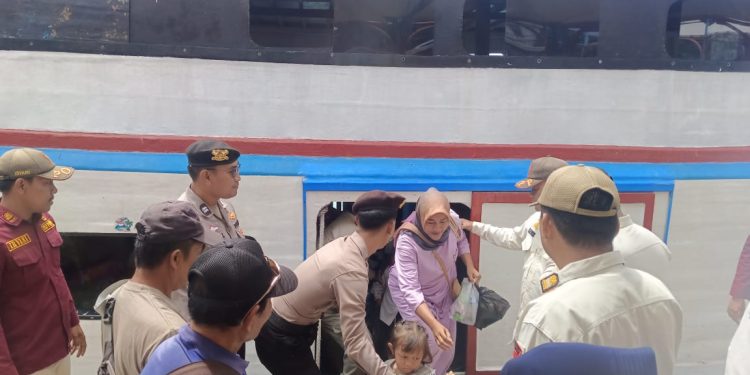 Kepulauan Seribu – Anggota Polsek Kepulauan Seribu Utara menunjukkan sikap humanis dengan membantu penumpang turun dari kapal dalam kegiatan pengamanan di Dermaga Pulau Pramuka, Kepulauan Seribu Utara, Kamis (06/02/2025). Selain membantu kelancaran arus penumpang, polisi juga mengawasi barang bawaan yang masuk guna mencegah peredaran narkoba dan minuman keras (miras).