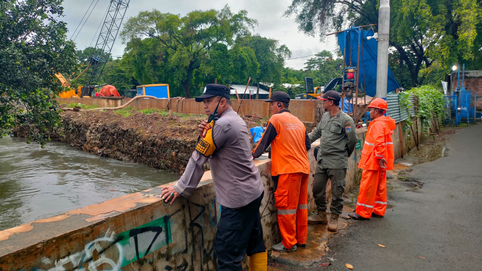 Jakarta – Dalam rangka mengantisipasi potensi banjir di wilayah Jakarta Timur, Bhabinkamtibmas Kelurahan Makasar Aipda Wasisto, bersama PPSU dan Satpol PP Kelurahan Makasar melaksanakan giat pemantauan dan monitoring daerah rawan genangan dan banjir pada Rabu (29/01/25).