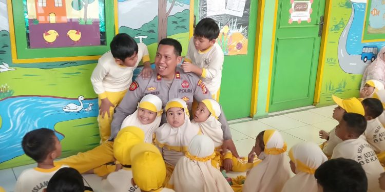 Polres Metro Bekasi – Kanit Samapta Polsek Babelan Iptu Mahmudi melaksanakan kegiatan Polisi Sahabat Anak kepada ratusan anak-anak di TK Aulia Perum PUP Sektor V Kelurahan Bahagia Kecamatan Babelan, Kabupaten Bekasi, Selasa (06/02/2024).