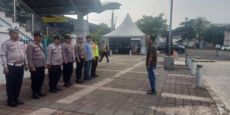 Bekasi – Polsek Rawa Lumbu menggelar apel kesiapan pengamanan di Stasiun Bekasi Timur, Selasa (23/9) pagi. Langkah ini dilakukan untuk mengantisipasi potensi gangguan kamtibmas dari pergerakan pelajar maupun kelompok yang hendak mengikuti aksi unjuk rasa ke Jakarta.