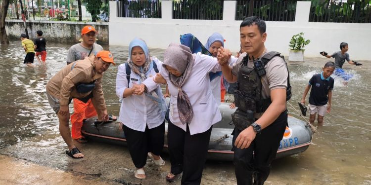 Banjir Rendam Pademangan, Kapolsek Turun Langsung Evakuasi Warga ke Rumah Sakit