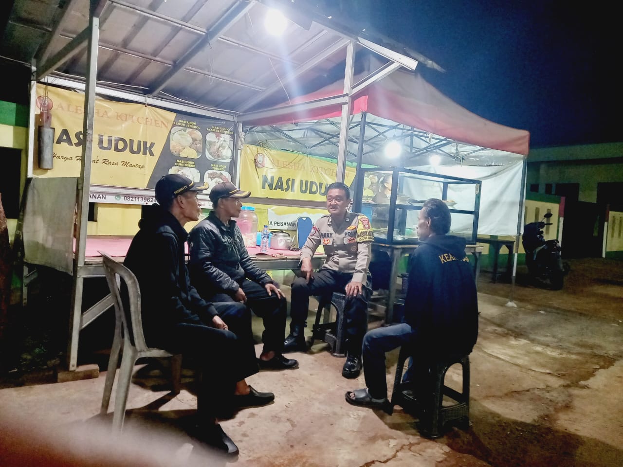 Bekasi – Bhabinkamtibmas Polsek Rawalumbu, Aiptu Heryanto, melakukan kunjungan ke pos keamanan lingkungan (pos kamling) di Jalan Makrik RT 03 RW 25, Kelurahan Bojong Rawalumbu, Kamis (19/9/2025) malam.