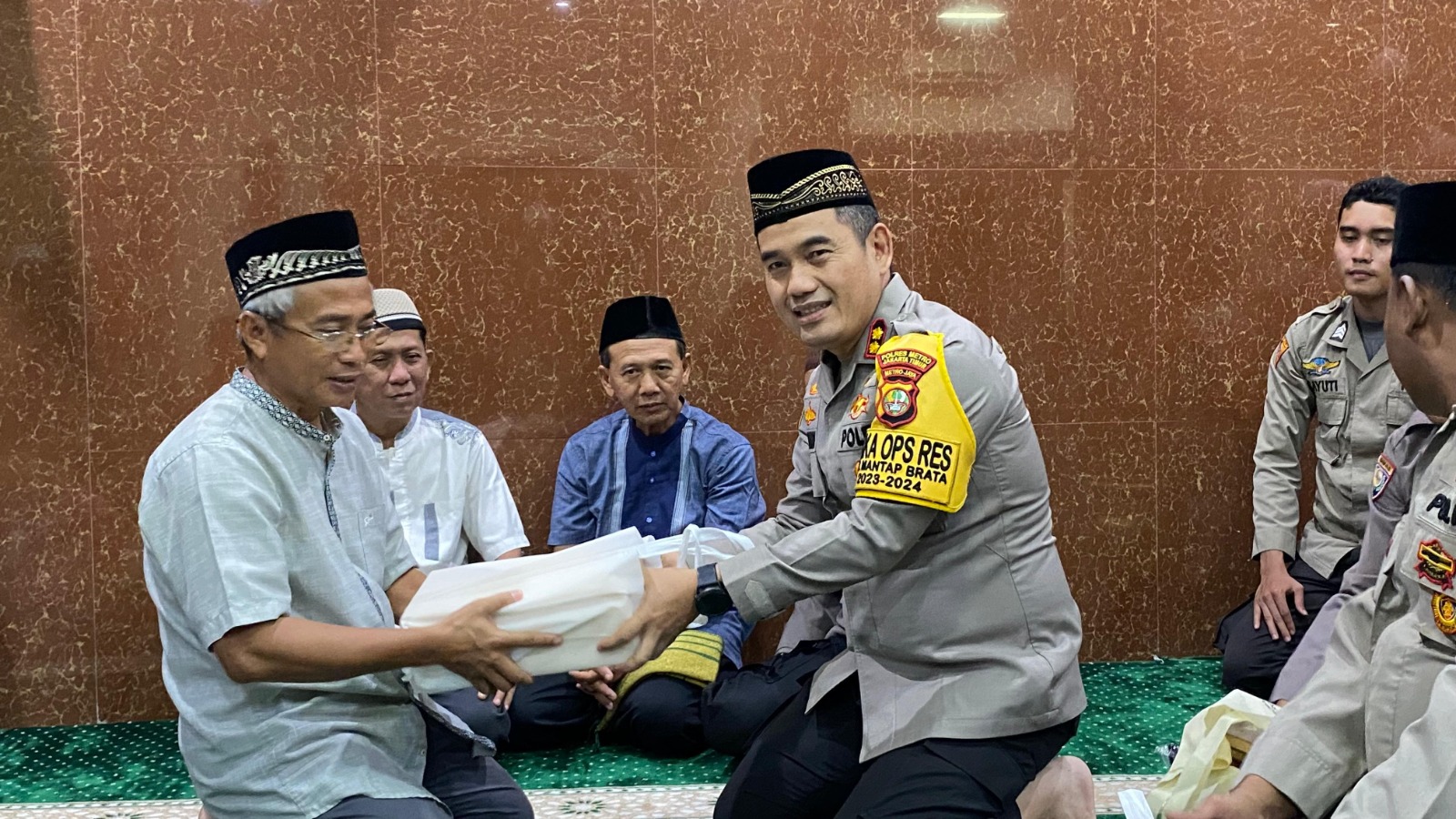 Tidak lupa dalam kegiatan Tarling ini Polda Metro Jaya memberikan cindera mata berupa alat sholat (Sajadah, Sarung, Mukenah dan alquran) kepada pengurus Masjid.