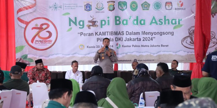 Jakarta Barat – Polres Metro Jakarta Barat bersama dengan Forkopimko dan pengurus cabang Nadhlatul Ulama (NU) Jakarta Barat serta berbagai elemen masyarakat menyelenggarakan kegiatan Ngopi Bada Ashar, Kamis, 25/7/2024.