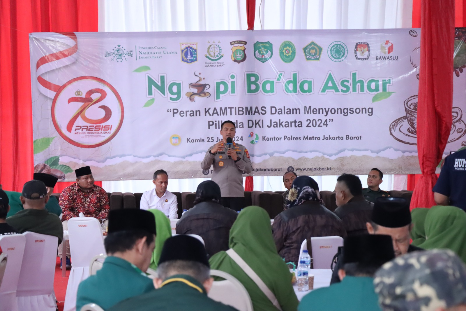 Jakarta Barat – Polres Metro Jakarta Barat bersama dengan Forkopimko dan pengurus cabang Nadhlatul Ulama (NU) Jakarta Barat serta berbagai elemen masyarakat menyelenggarakan kegiatan Ngopi Bada Ashar, Kamis, 25/7/2024.