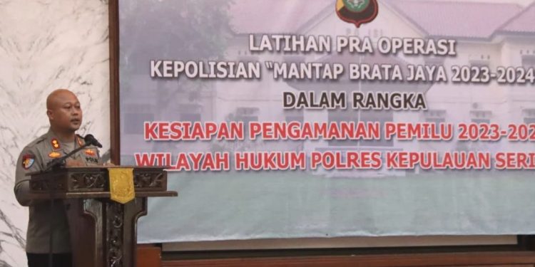 POLDA METRO JAYA – Polres Kepulauan Seribu melakukan kegiatan pembukaan pelatihan Pra Operasi “Mantap Brata Jaya 2023 – 2024” dalam rangka kesiapan pengamanan pemilu 2023-2024 wilayah hukum Polres Kepulauan Seribu di Gedung Mitra Praja, Sunter, Jakarta Utara, Rabu (11/10/2023).