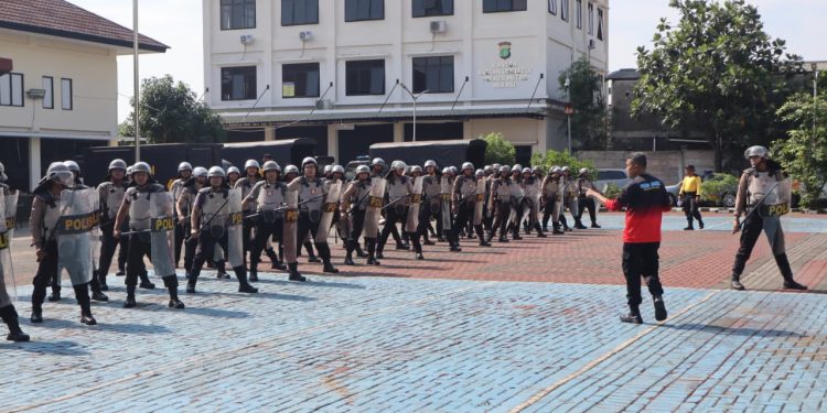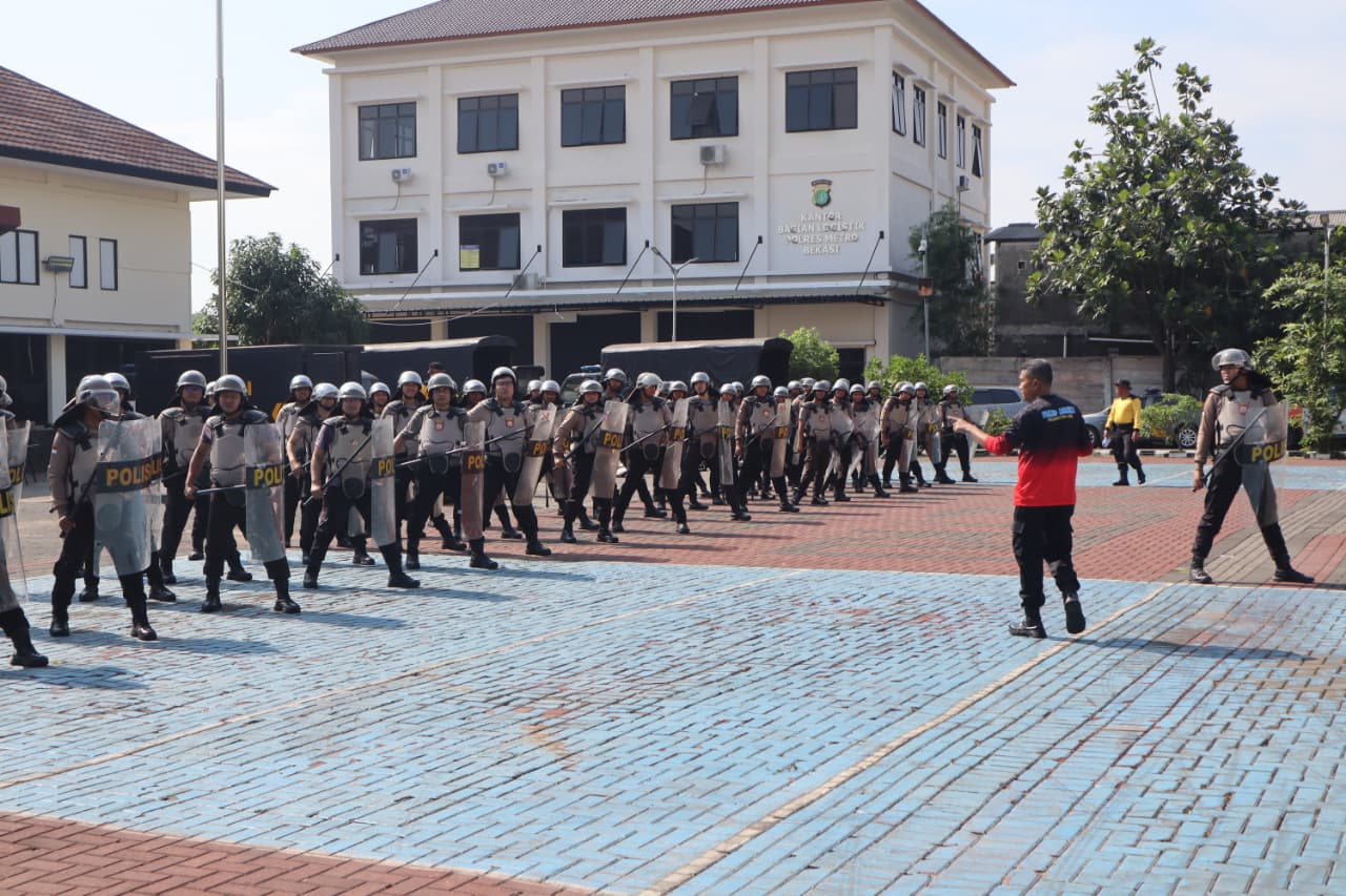 Bekasi — Dalam rangka menjaga kesiapsiagaan dan meningkatkan kemampuan personel menghadapi situasi kontinjensi, Polres Metro Bekasi kembali melaksanakan latihan Dalmas (Pengendalian Massa) di Lapangan Promoter Mapolres Metro Bekasi, Sabtu (1/11).