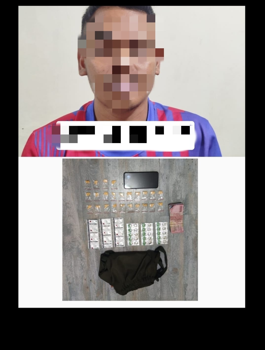 Dari hasil penggeledahan badan, pakaian, dan barang bawaan tersangka, petugas berhasil menyita sejumlah obat-obatan daftar G serta barang lainnya, antara lain: