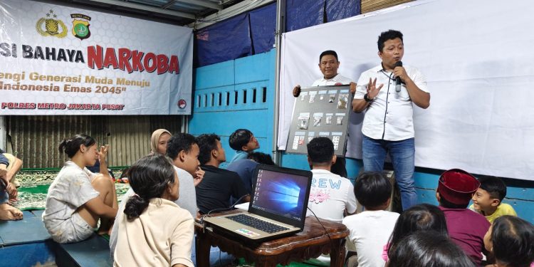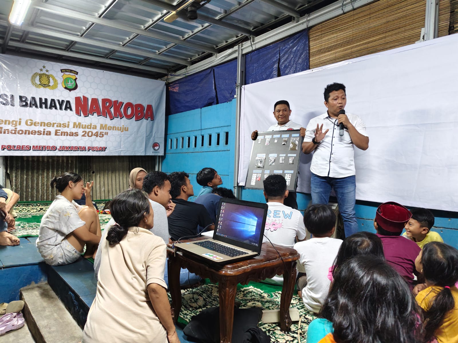 Jakarta – Polres Metro Jakarta Pusat gelar Penyuluhan, Pencegahan, Pemberantasan, Penyalahgunaan dan Peredaran Gelap Narkoba (P4GN) bersama Bhabinkamtibmas yang berlokasi di Posko KTJ Kampung Bali, Jl. Tanah Rendang Seberang 1, RT. 002 RW. 003, Kel. Kampung Bali, Kec. Tanah Abang, Jakarta Pusat. Senin (24/06/24) malam.