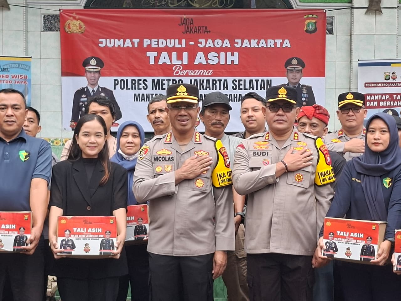 Jakarta Selatan – Kapolres Metro Jakarta Selatan, KOMBES POL Nicolas Ary Lilipaly, S.I.K., M.H., M.Si, melaksanakan kegiatan sosial bertajuk Jaga Jakarta Jum’at Peduli Tali Asih bersama jajaran Polres Metro Jakarta Selatan (18/09/2025).