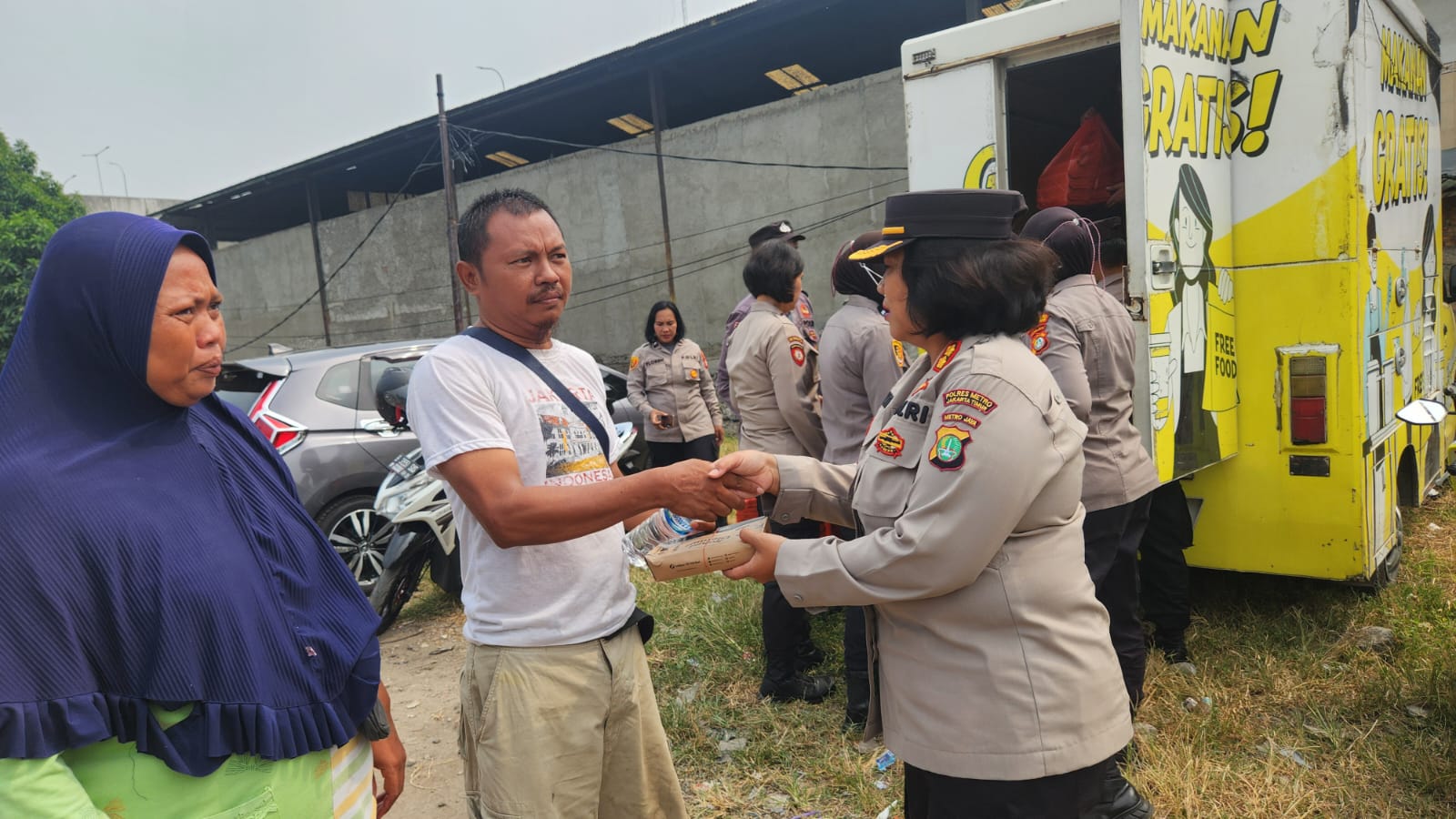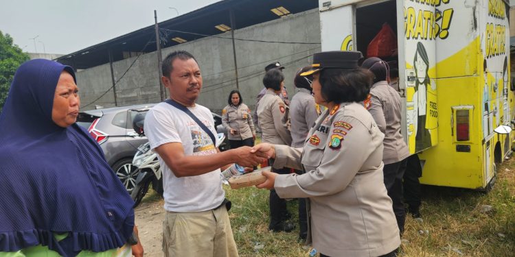 Jakarta – Kabaglog Polres Metro Jakarta Timur AKBP Julianti beserta Jajaran Binmas Polres Metro Jaktim dan Polsek Jatinegara membagikan nasi kotak dan air mineral gratis kepada Warga masyarakat kurang mampu di Slum Area Kp. Jembatan RT.012/RW.06 Kel. Cipinang Besar Selatan Kec. Jatinegara Jakarta Timur. Kamis (16/5/24)