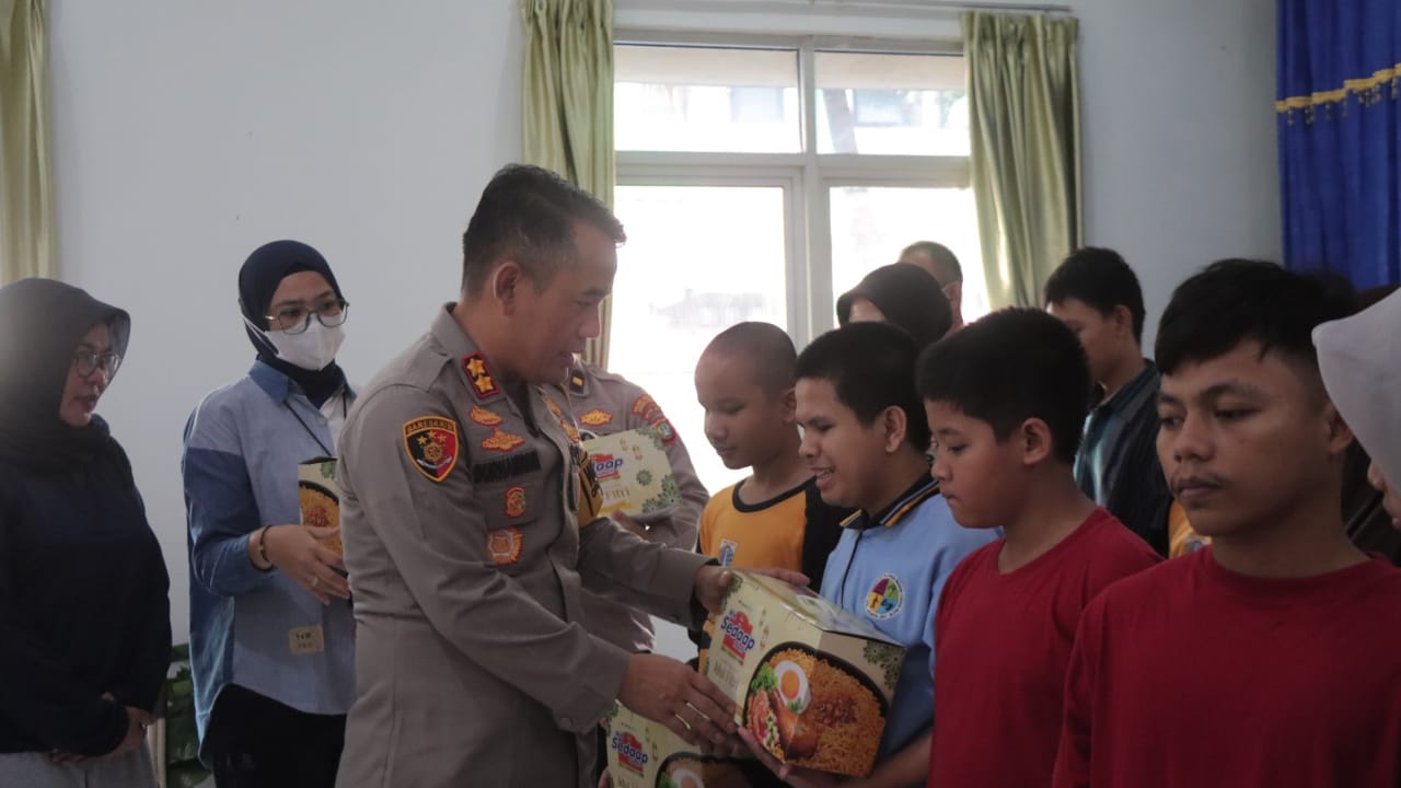 Selanjutnya sebagai wujud kepedulian Polres Metro Jakarta Timur memberikan sembako kepada perwakilan anak-anak distabilitas panti asuhan dan perwakilan warga.