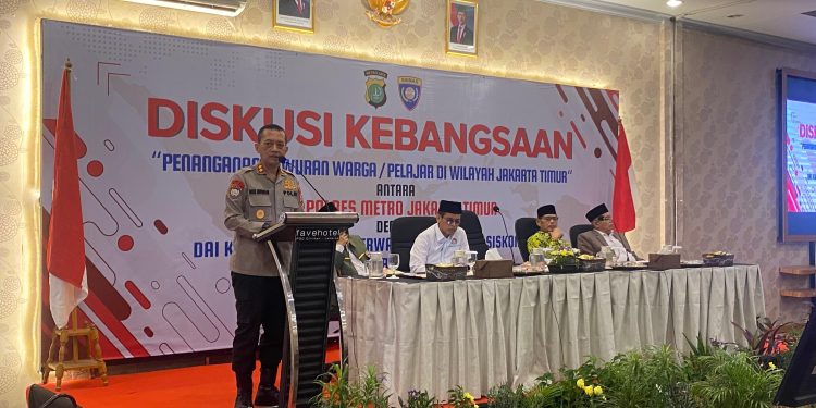 Jakarta – Polres Metro Jakarta Timur menggelar Diskusi Kebangsaan bertema “Penanganan Tawuran Warga/Pelajar di Wilayah Jakarta Timur” di Ballroom Fave Hotel, Cililitan. Acara ini dihadiri oleh berbagai pihak, mulai dari Kapolres Metro Jakarta Timur, Kombes Pol. Nicolas Ary Lilipaly, hingga tokoh masyarakat dan akademisi. Senin (23/12/24).