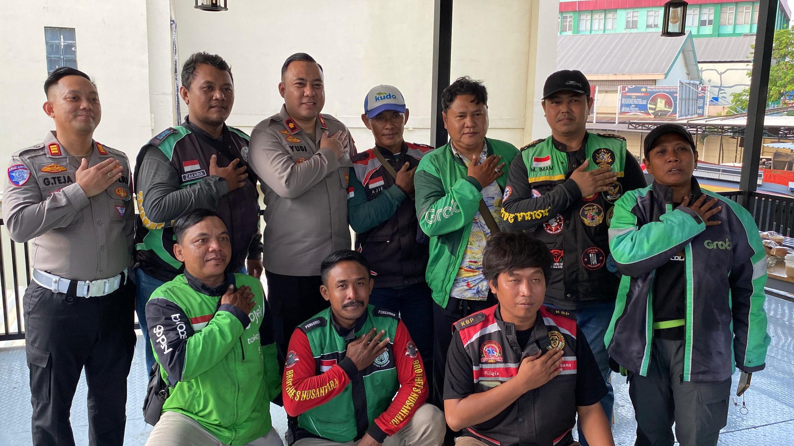 Ketua Ojol Korwil Jakarta Utara, Bapak Mansyur serta jajaran pengurus dan anggota komunitas Ojol lainnya.
