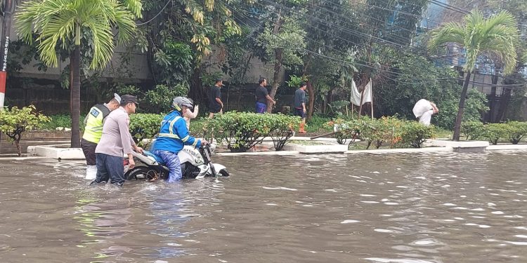 Jakarta – Hujan dengan intensitas tinggi yang mengguyur wilayah Jakarta Utara menyebabkan genangan air di sejumlah titik wilayah hukum Polres Pelabuhan Tanjung Priok. Kondisi tersebut berdampak pada kelancaran lalu lintas, aktivitas pelabuhan, serta mobilitas masyarakat dan pekerja pelabuhan.