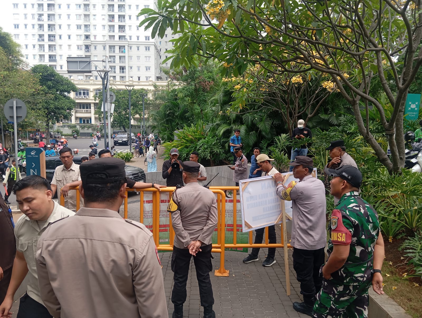 Di sisi lain, jalannya aksi mendapatkan pengawalan dari jajaran Polres Metro Jakarta Pusat dan Polsek Kemayoran. Kehadiran polisi di lokasi bukan hanya menjaga keamanan, melainkan juga memastikan mahasiswa dapat menyampaikan aspirasi secara aman dan tertib.