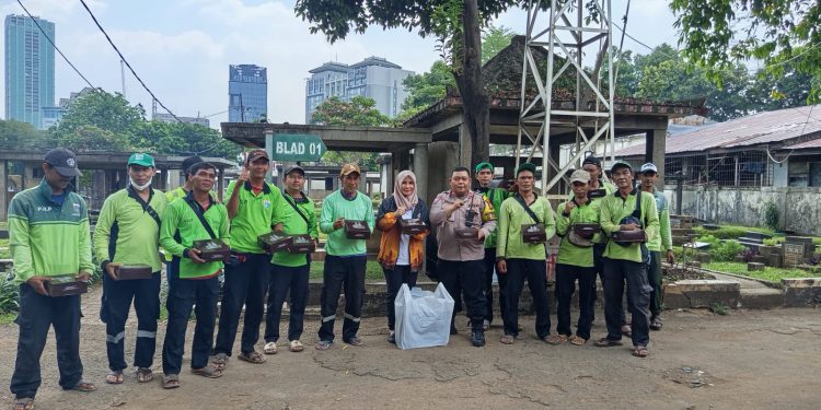 Jakarta Pusat – Pada hari Selasa, 30 September 2025, Bhabinkamtibmas Kelurahan Petamburan Aipda Ginanjar S.P berbagi kebahagian dengan membagikan makanan siap saji kepada Petugas Gali Kubur dan Perawat Makam di TPU Petamburan Jalan KS. Tubun Raya, Kelurahan Petamburan, Kecamatan Tanah Abang, Jakarta Pusat. Selasa (30/9/2025). berbagi makanan siap saji merupakan wujud kepedulian Polri untuk menguatkan sinergitas dengan masyarakat.