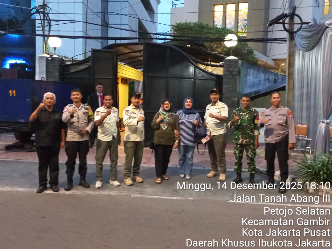Bhabinkamtibmas Kelurahan Petojo Selatan, Bripka Salam NZ, bersama personel Polsubsektor Medan Merdeka Barat, Babinsa, Satpol PP, FKDM, dan perwakilan pengurus wilayah hadir langsung untuk melakukan pemantauan dan pengamanan selama rangkaian ibadah berlangsung. Ibadah Natal yang dihadiri sekitar 1.200 jemaat tersebut berjalan dengan tertib, lancar, dan kondusif tanpa adanya gangguan kamtibmas.