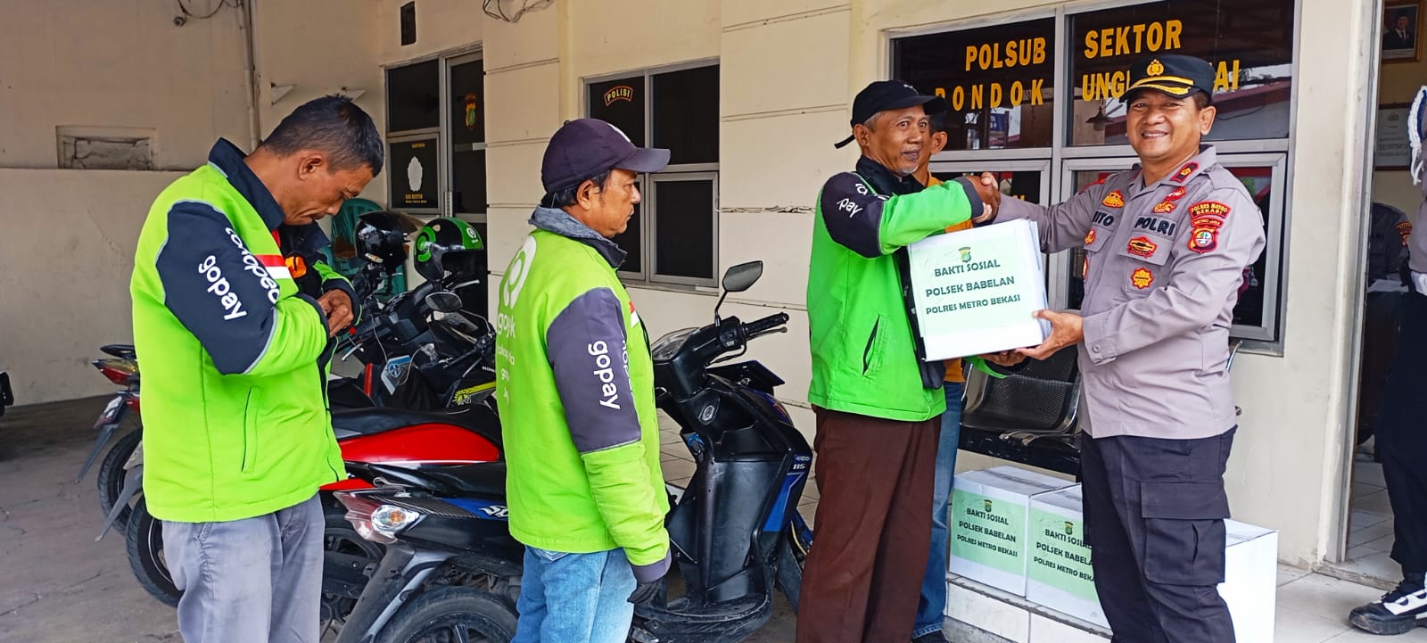 Bekasi – Dalam rangka mempererat silaturahmi sekaligus wujud kepedulian terhadap masyarakat, Polsek Babelan Polres Metro Bekasi menggelar kegiatan Jum’at Berkah berupa pembagian paket sembako kepada kelompok ojek online (Ojol), Jumat (19/9/2025).