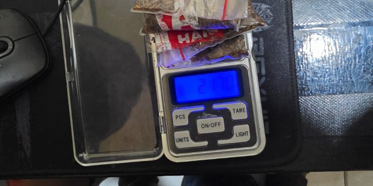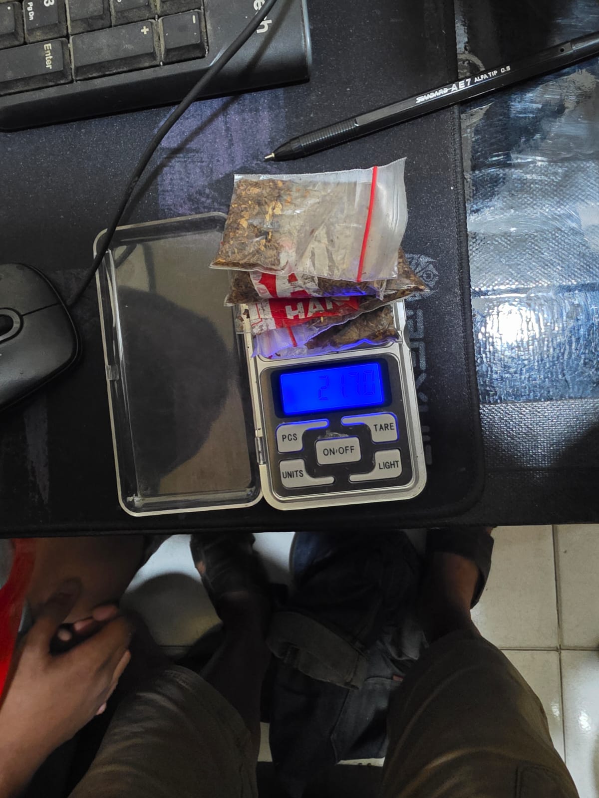 Dalam penangkapan tersebut, petugas menyita sejumlah barang bukti antara lain dua plastik klip berisi tembakau sintetis dengan berat bruto 21,70 gram, satu timbangan digital, satu pak plastik klip, satu unit sepeda motor Honda Beat, satu dompet hitam, dua puntung rokok, uang tunai Rp530.000, satu ponsel merek Vivo, satu jam tangan, dan satu gunting warna hitam.