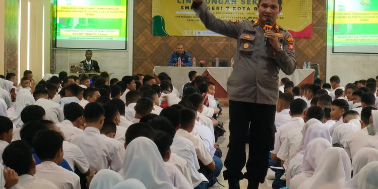 POLDA METRO JAYA – Wakapolsek Jatiasih AKP Damanik SH bersama Kanit Reskrim Polsek Jatiasih, Bhabinkamtibmas Jatisari melaksanakan kegiatan masa pengenalan lingkungan Sekolah (MPLS) 2023 di SMK 7 Kota Bekasi. Kegiatan ini diikuti oleh 396 siswa baru dengan tema “Bahaya Narkotika dan Obat Terlarang”.