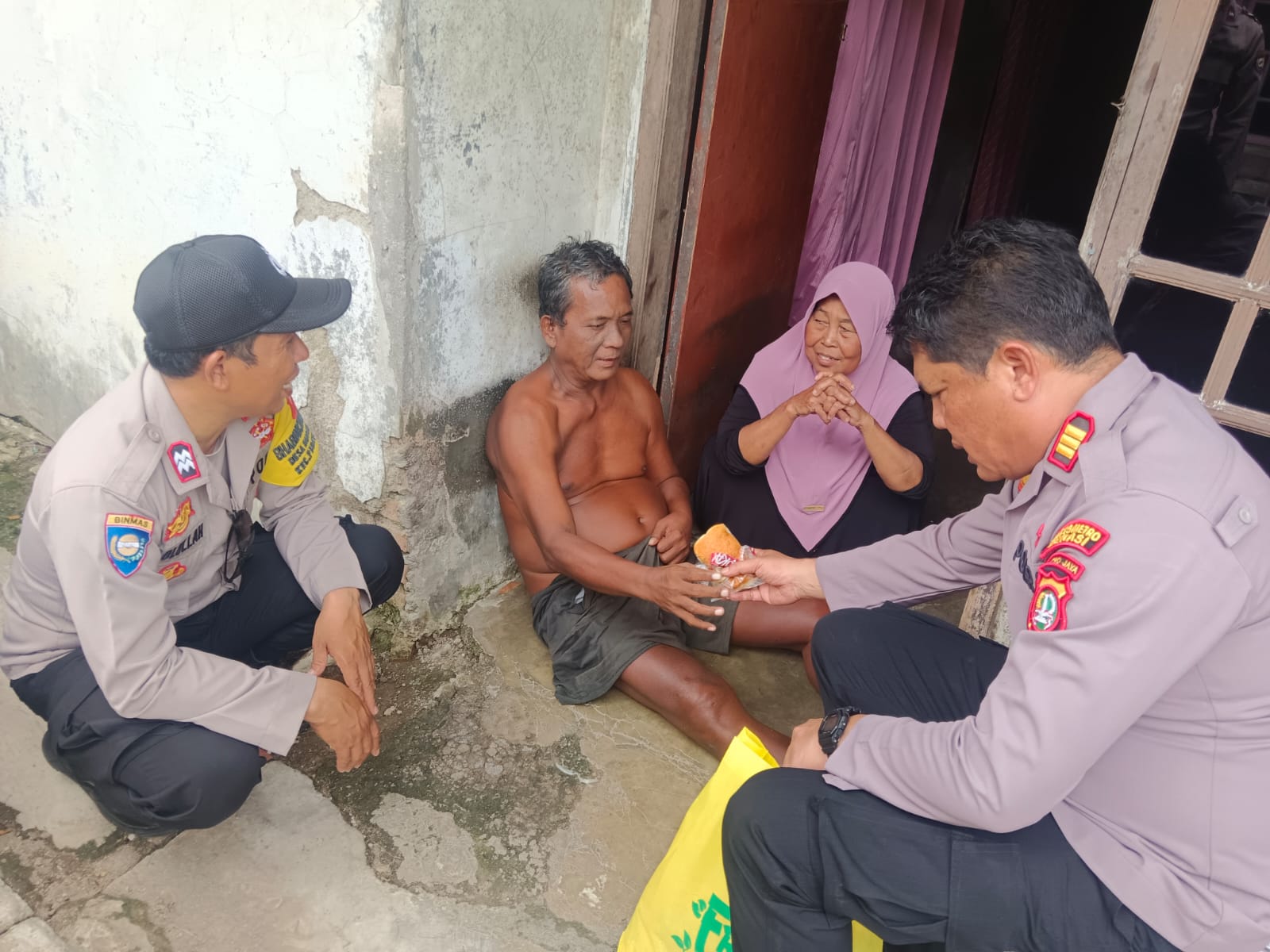 Dalam kegiatan tersebut, rombongan menyambangi rumah Bapak Endang, warga Kampung Kobak Pasir RT 03/06 Desa Kertajaya, yang tengah mengalami sakit dan berada dalam kondisi kurang mampu. Kehadiran jajaran Polsek Pebayuran disambut hangat oleh keluarga.