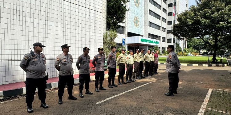 Jakarta Pusat — Jajaran Polsek Sawah Besar melaksanakan apel kesiapan pengamanan pelayanan aksi unjuk rasa yang akan digelar oleh Aliansi Mahasiswa Peduli Bangsa di depan Kantor Kementerian Agama, Jalan Lapangan Banteng Barat, Sawah Besar, Jakarta Pusat, Rabu (25/2/2026). Apel pengamanan digelar sejak pukul 10.00 WIB sebagai langkah antisipasi menjaga situasi tetap aman dan kondusif.