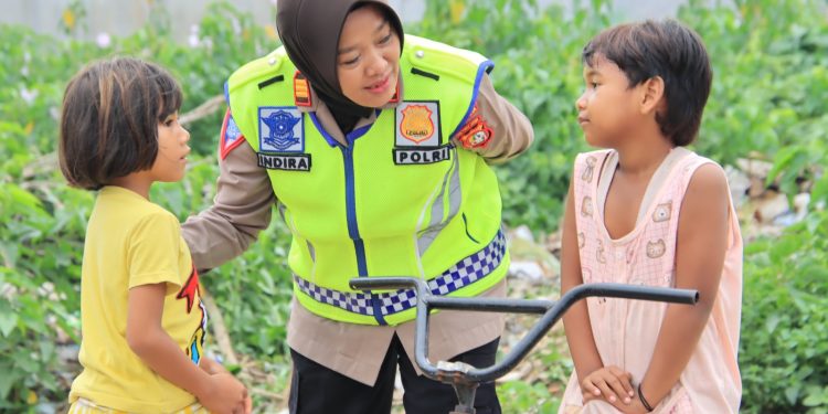 Dengan pembawaan sebagai seorang ibu dan penuh kasih sayang, AKP Indira menjelaskan dengan pelan dan diselingi candaan kalau sekolah itu penting dan perlu bagi anak seusia mereka.
