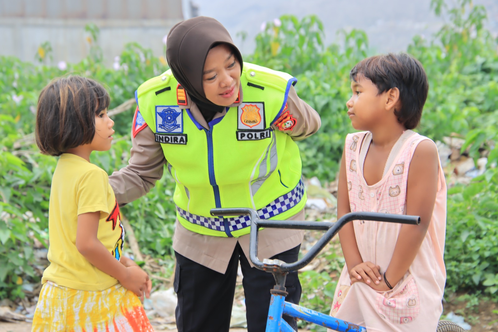 Dengan pembawaan sebagai seorang ibu dan penuh kasih sayang, AKP Indira menjelaskan dengan pelan dan diselingi candaan kalau sekolah itu penting dan perlu bagi anak seusia mereka.