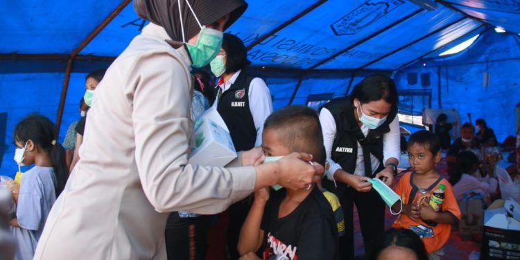 POLDA METRO JAYA – Polwan (Polisi Wanita) Polres Metro Jakarta Utara dan Polsek Penjaringan dikerahkan untuk memberikan trauma healing kepada korban terdampak kebakaran di Kapuk Muara, Penjaringan, Jakarta Utara.