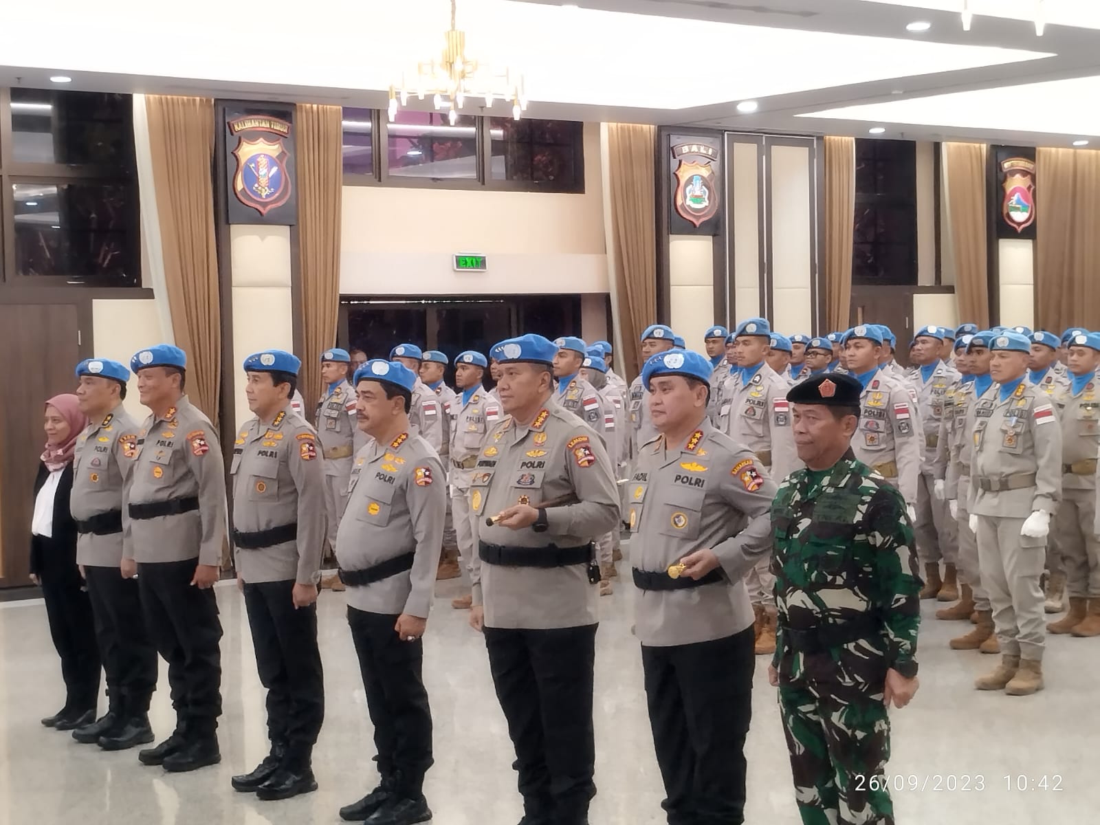 “Atas nama institusi Polri saya ucapkan terima kasih dan apresiasi setinggi-tingginya atas pengabdian terbaik yang telah rekan-rekan sekalian tunjukan di kancah internasional. Saya juga ucapkan terima kasih kepada Kementerian Luar Negeri, Divhubinter Polri, dan seluruh pihak yang berkontribusi dalam misi ini,” ujar Wakapolri membacakan amanat Kapolri, Selasa (29/9/23).