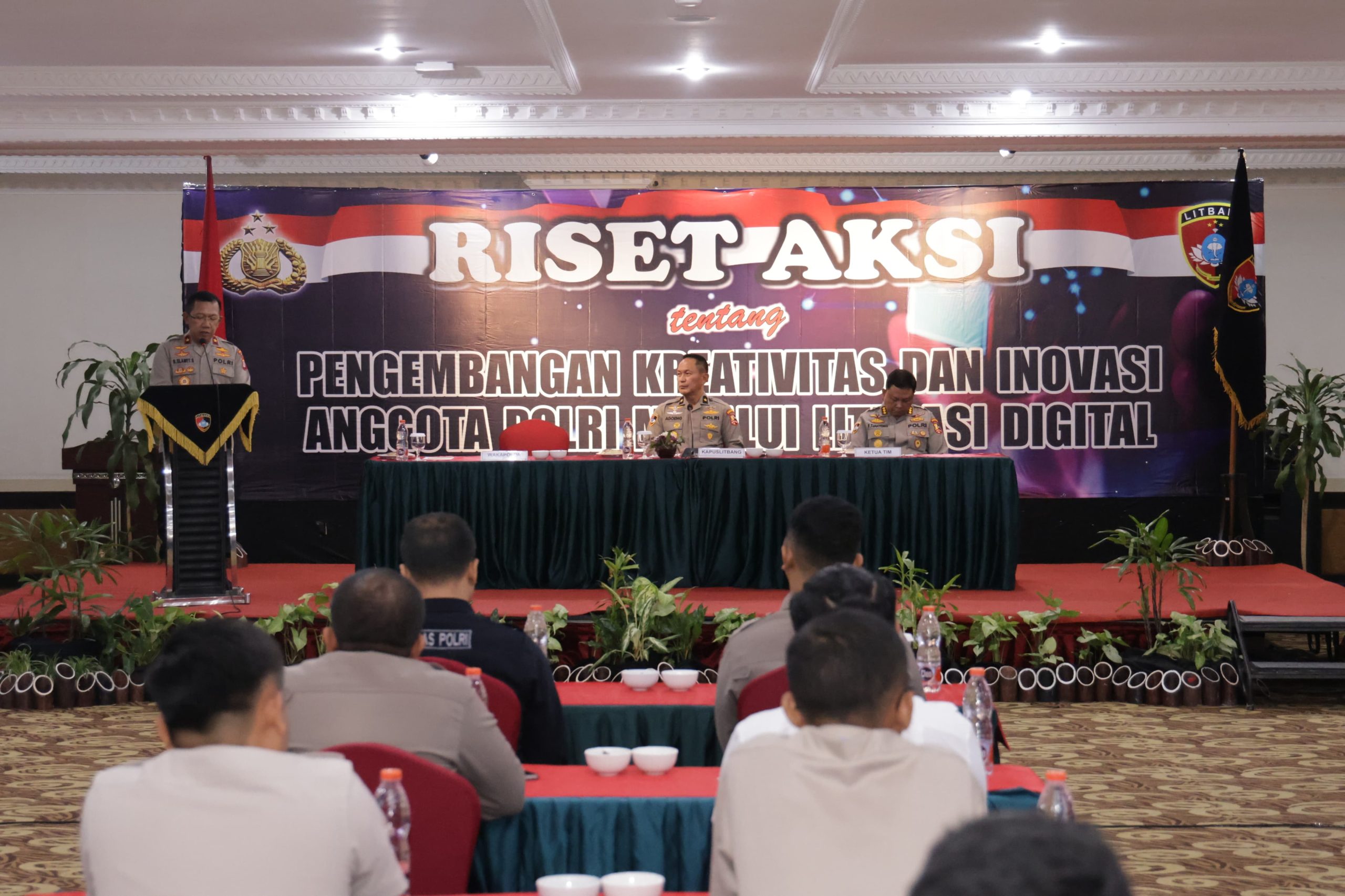 “Menjadikan SDM Polri yang unggul di era Police 4.0 saat ini, dibutuhkan anggota polri yang cakap dalam memanfaatkan media digital,” ucap Kapuslitbang Polri Brigjen Pol Drs. Iswyoto Agoeng Lesmana Doeta saat memberikan sambutan pada pelaksanaan pembukaan riset aksi “Pengembangan Kreativitas dan Inovasi Anggota Polri melalui Literasi Digital” di Yogyakarta, Selasa 10 Oktober 2023.