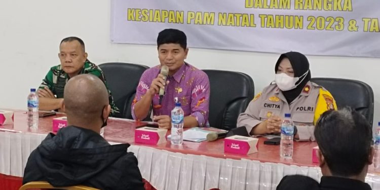 “Untuk itu marilah kita jaga Natal dan Tahun Baru 2023/2024 agar berjalan lancar dan jangan terpengaruh dengan situasi yang gak jelas, jangan sampai menggunakan lambang Partai,” pungkasnya.