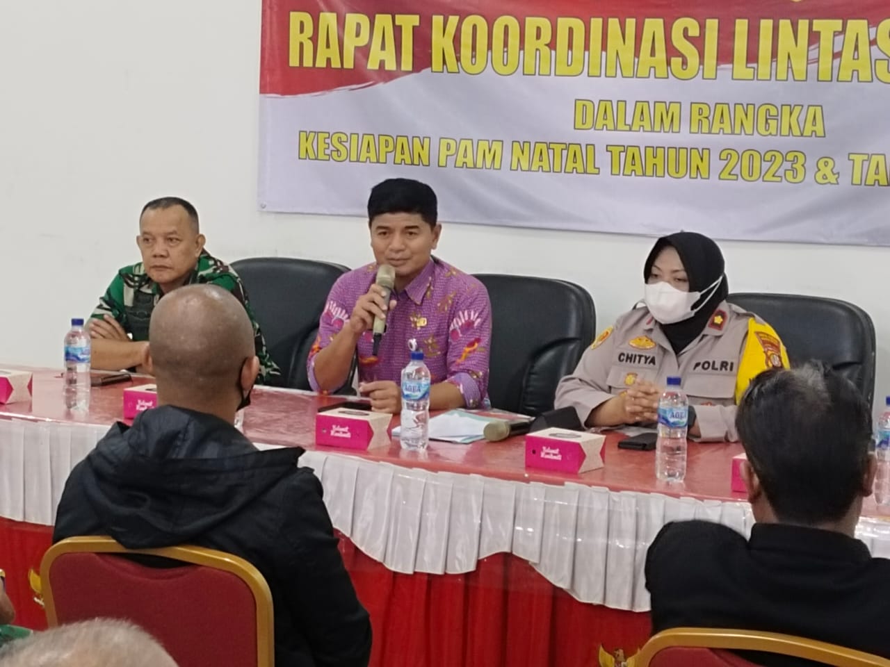 “Untuk itu marilah kita jaga Natal dan Tahun Baru 2023/2024 agar berjalan lancar dan jangan terpengaruh dengan situasi yang gak jelas, jangan sampai menggunakan lambang Partai,” pungkasnya.