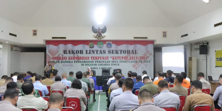Jakarta – Polres Metro Jakarta Timur bersama Forkopimko menggelar Rapat Koordinasi Lintas Sektoral Ops Terpusat Ketupat Jaya 2024 dalam rangka pengamanan Hari Raya Idul Fitri 1445 H, di Aula LT 6 Restro Jaktim Mapolres, Selasa (2/4/2024) siang.