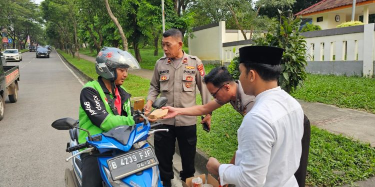 Kabupaten Bekasi – Dalam rangka menyambut bulan suci Ramadhan dengan penuh kebaikan dan berkah, IPDA Ranto dari Polsek Cikarang Selatan, didampingi oleh Pengurus Dewan Kemakmuran Masjid (DKM) Masjid Al Barkah dan warga Desa Cibatu, menggelar kegiatan Ramadhan Barokah. Kegiatan ini dilaksanakan dengan membagikan takjil dan nasi kotak kepada pengendara ojek online (Ojol) dan masyarakat yang melintas di Jalan Majapahit, Lippo Cikarang Selatan. Selasa (12/3/24).
