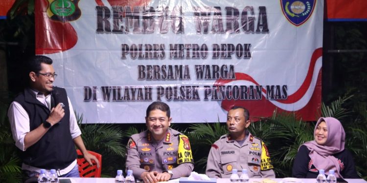 Kapolres Metro Depok Kombes Pol Arya Perdana S.H, S.I.K, M.si memberikan arahan dan mendengarkan aspirasi dari warga seputar upaya peningkatan keamanan dan pelayanan di wilayah tersebut.