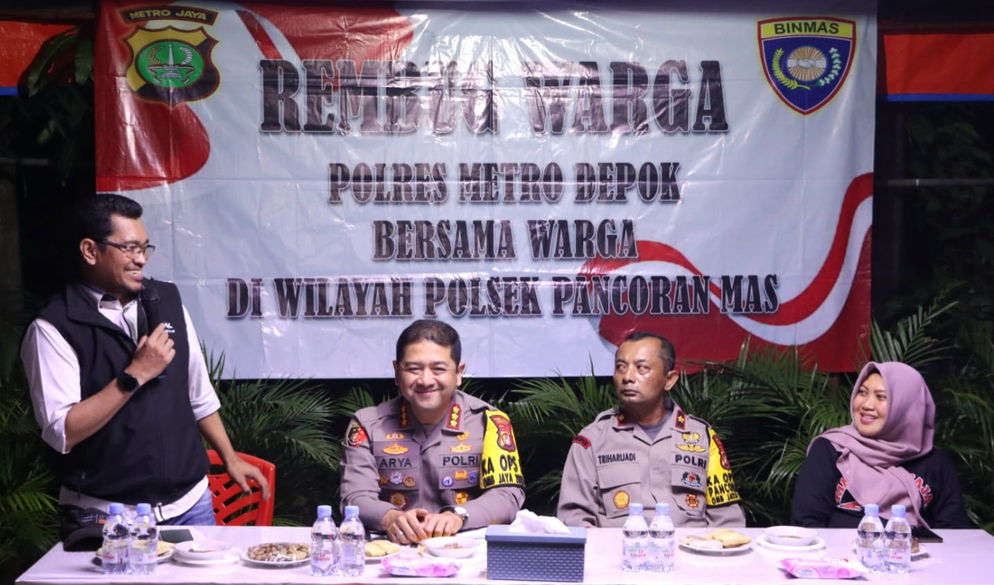Kapolres Metro Depok Kombes Pol Arya Perdana S.H, S.I.K, M.si memberikan arahan dan mendengarkan aspirasi dari warga seputar upaya peningkatan keamanan dan pelayanan di wilayah tersebut.
