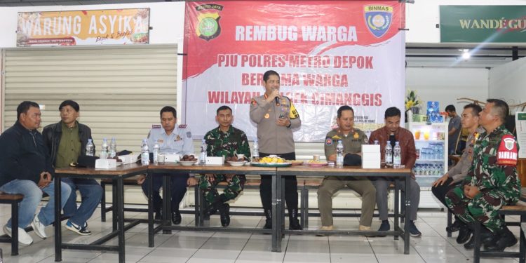 Kapolres Metro Depok Kombes Pol Arya Perdana menggelar acara “Rembug Warga” bersama masyarakat Kelurahan Harjamukti, Cimanggis. Acara ini bertujuan untuk memperkuat sinergitas antara kepolisian dan warga dalam menjaga keamanan dan ketertiban lingkungan.