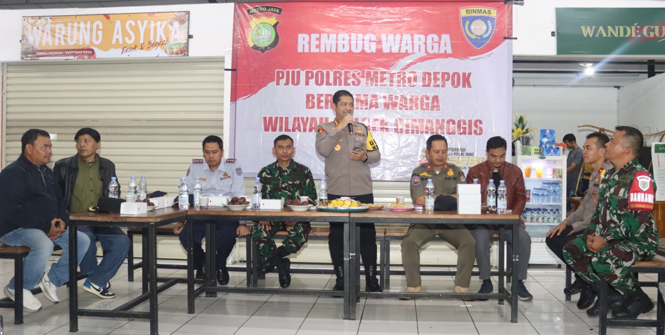 Kapolres Metro Depok Kombes Pol Arya Perdana menggelar acara “Rembug Warga” bersama masyarakat Kelurahan Harjamukti, Cimanggis. Acara ini bertujuan untuk memperkuat sinergitas antara kepolisian dan warga dalam menjaga keamanan dan ketertiban lingkungan.
