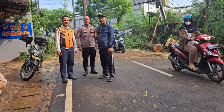 Tangerang Selatan – Menindaklanjuti laporan warga terkait pohon tumbang, Bhabinkamtibmas Kelurahan Pondok Jaya, Bripka Nasir H, melaksanakan kegiatan pengecekan pada Selasa, 8 Juli 2025, di Jalan Tegal Rotan RT 02/01, Kelurahan Pondok Jaya, Kecamatan Pondok Aren, Kota Tangerang Selatan. Kegiatan ini dilakukan untuk memastikan keamanan dan kelancaran arus lalu lintas di lokasi terdampak.