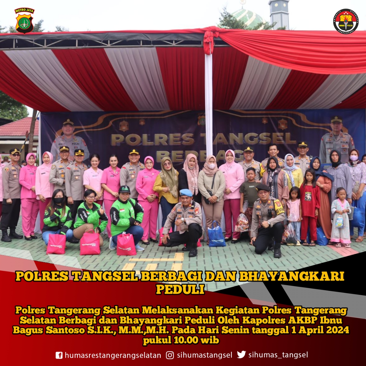 Kapolres Tangsel AKBP Ibnu Bagus Santoso, S.I.K., M.M., M.H. yang memimpin langsung kegiatan “Polres Tangsel Berbagi” tersebut menerangkan bahwa sembako yang dibagikan ke masyarakat berjumlah 1000 paket.