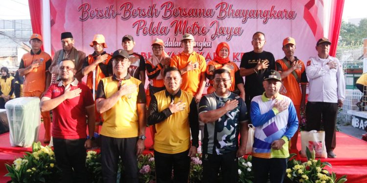 Jakarta – Kapolda Metro Jaya Irjen Pol. Karyoto, S.I.K pimpin bersih-bersih bersama Forkopimda DKI dan Bhayangkara Polda Metro Jaya dalam rangka menyambut Hari Bhayangkara Ke-78 Tahun 2024 di Kelurahan Pegangsaan Menteng Jakarta Pusat. Minggu (23/6/2024).
