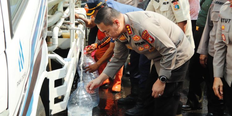“Hari ini kita bagikan 10.000 liter air bersih dan 100 paket sembako, yang diharapkan dengan adanya kegiatan ini warga masyarakat Rw 04 Kel. Jembatan Lima ini dapat terbantu”