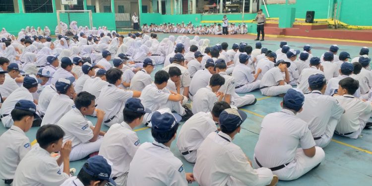 TANGSEL – Sat Binmas Polres Tangerang Selatan melaksanakan Program Cegah Tawuran Antar Pelajar (CETAR) melalui kegiatan pembinaan dan penyuluhan kepada pelajar SMP YAPIA Pondok Aren, Kecamatan Pondok Aren, Kota Tangerang Selatan, pada Senin (26/1/2026) pagi. Kegiatan ini dipimpin oleh Kanit Bin Tibsos Sat Binmas Polres Tangerang Selatan, Ipda M. Irfan F., S.H., sebagai upaya pencegahan kenakalan remaja sejak dini.