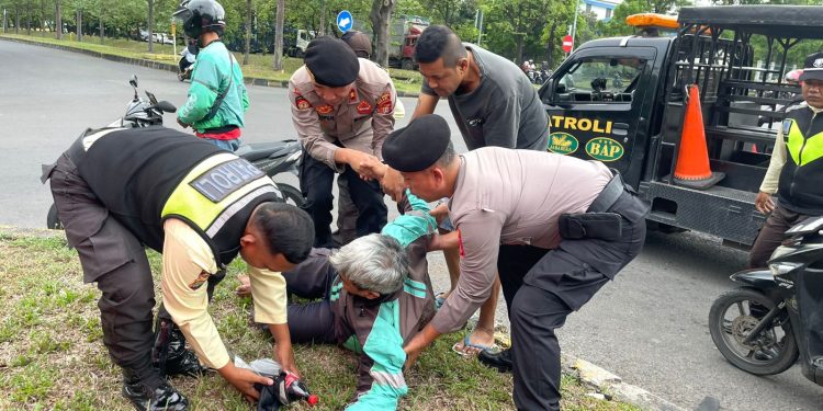Evakuasi dilakukan setelah petugas Sat Pamobvit yang tengah melaksanakan patroli rutin di kawasan obyek vital nasional melihat adanya insiden kecelakaan di lokasi tersebut. Tanpa menunggu lama, personel segera mengamankan area kejadian dan memberikan pertolongan pertama kepada korban.