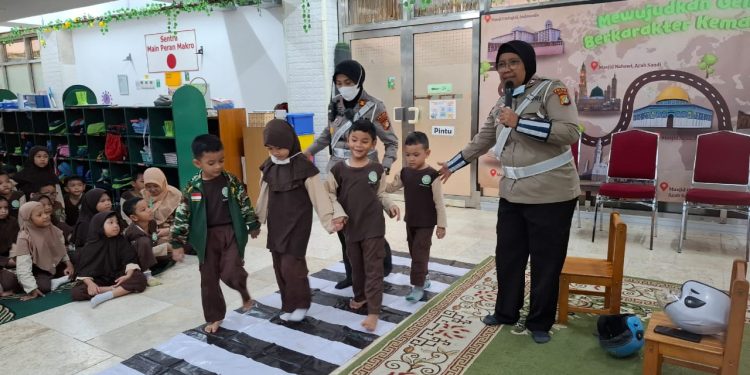 Jakarta Pusat – Satuan Lalu Lintas (Satlantas) Polres Metro Jakarta Pusat menggelar kegiatan Polisi Sahabat Anak (POLSANAK). Kegiatan ini bertujuan untuk mengenalkan budaya tertib berlalu lintas kepada anak-anak sejak usia dini, di TK RA AR Rozzag Istiqlal, Jakarta Pusat, pada Rabu (5/2/2025).