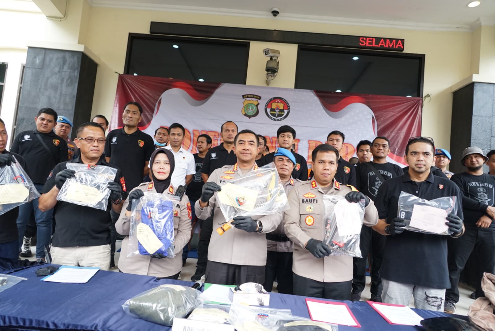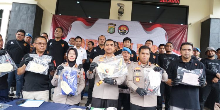 Dalam rilis tersebut, ditampilkan barang bukti yang berhasil diamankan dari para pelaku, termasuk sejumlah kendaraan motor, senjata tajam yang digunakan dalam aksi kejahatan, dan barang-barang hasil curian lainnya.