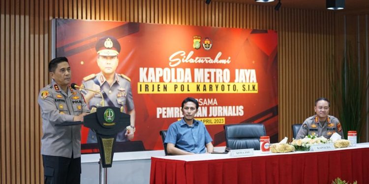 POLDA METRO JAYA – Kapolda Metro Jaya Irjen Pol. Karyoto bertatap muka dan silaturahmi bersama wartawan mitra Polda Metro Jaya (PMJ) bertempat Didepan gedung Bid Humas Polda Metro Jaya, Rabu (12/04/2023).