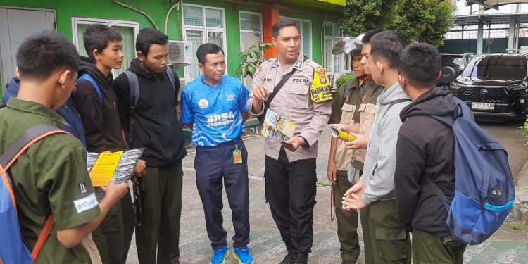 Bhabinkamtibmas Kel. Perwira Kec. Bekasi Utara Bripka Oki DS melaksanakan Sosialisasi dan Pembagian Brosur Penerimaan Polri Terpadu Tahun Ajaran 2024, Kamis (18/4/2024)